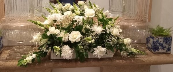 Arranged with soft greenery