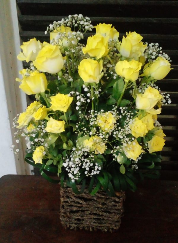 A radiant bouquet that beams with happiness and warmth. Golden Glow Arrangement features 40 vibrant yellow rose stems, symbolizing friendship, joy, and new beginnings. This sunny floral display is perfect for celebrations, congratulations, or simply brightening someone’s day with heartfelt positivity.
